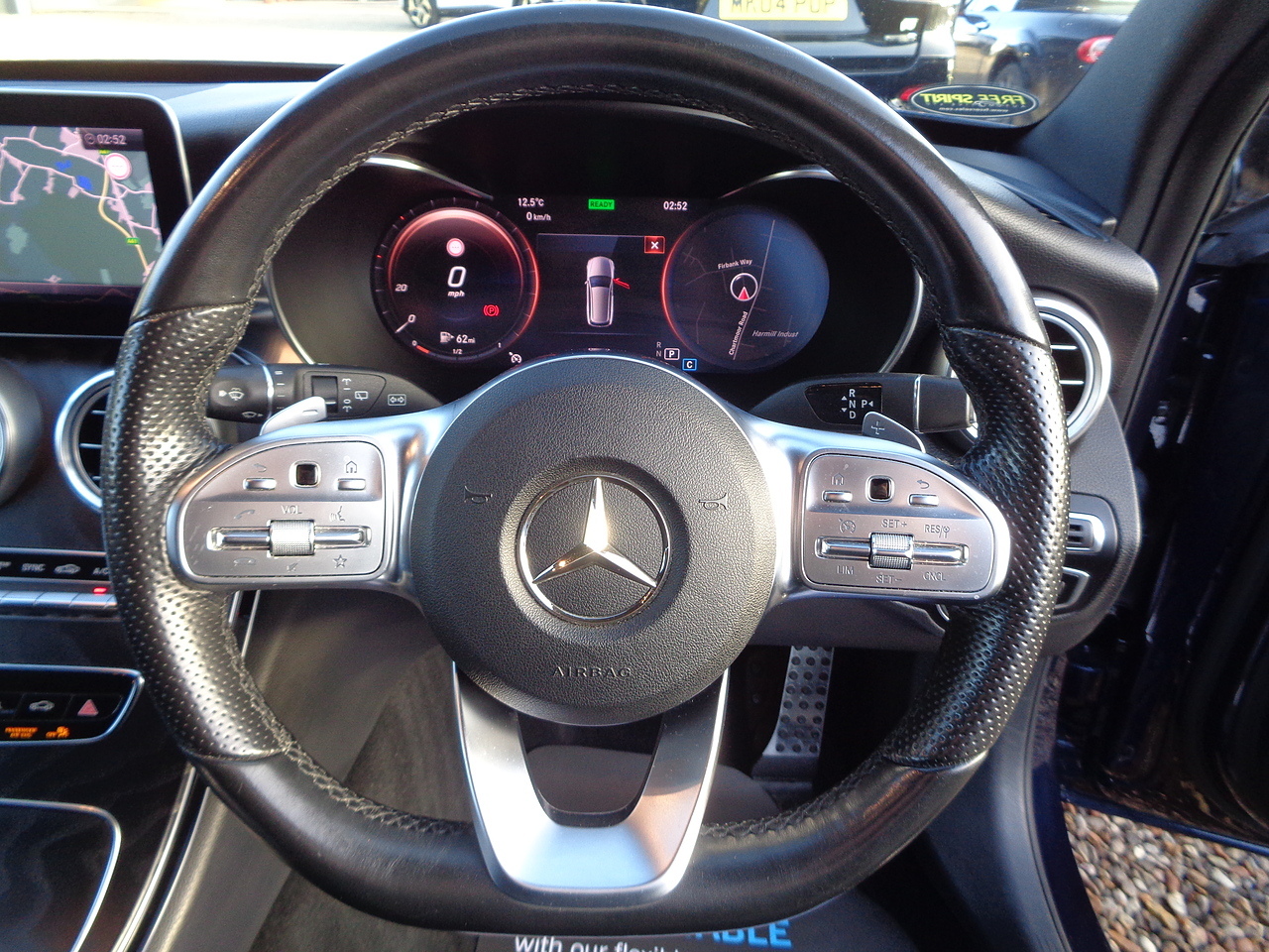 • Steering Wheel - 3-Spoke Multi-Function AMG in Black Nappa Leather with Flattened Bottom Section and Chrome Inserts and Perforated Leather in Grip Area